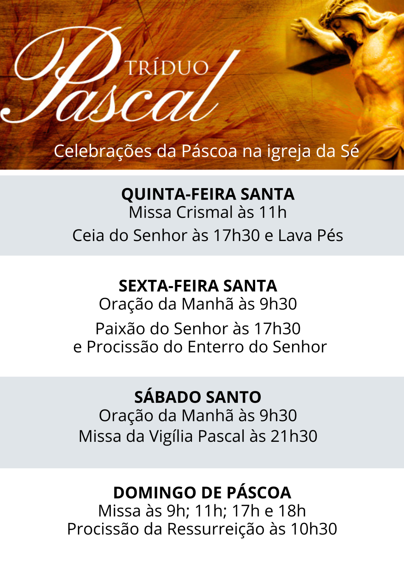 Domingo: 8h; 9h; 11h; 17h; 18h